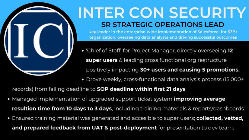 Ish never fails to tackle tough projects and come out successful with producing effective and organized results. He is an inspiring and motivational coworker who taught me much of the skills that I took on as I went into a leadership position with Inter-Con. I would recommend Ish as a highly valuable asset to any company he works for and cannot emphasize enough how lucky I am to have worked and learned alongside him.